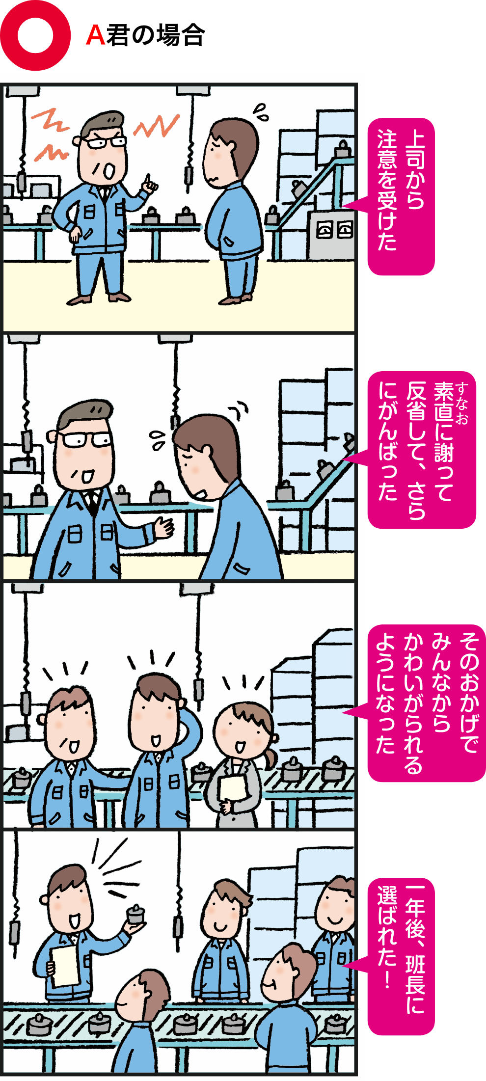 ・素直に反省し、その後は、行動や態度で表わそう。反省している態度が伝わると、上司や職場のみんなから信頼されるようになるよ!